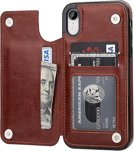 Amazon Com Ot Onetop Iphone Xr Wallet Case With Card Holder Premium Pu Leather Kickstand Card Slots Case Double Magnetic Clasp And Durable Shockproof Cover For Iphone Xr 6 1 Inch Brown - Preco baixo e entrega rapida.